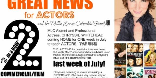 CHRYSSIE WHITEHEAD RETURNS!! Teaching an Actor’s 2-day Workshop the Week of July 27… Post navigationPreviousPrevious post:SOLES TWINSNextNext post:Jasmine Sanders